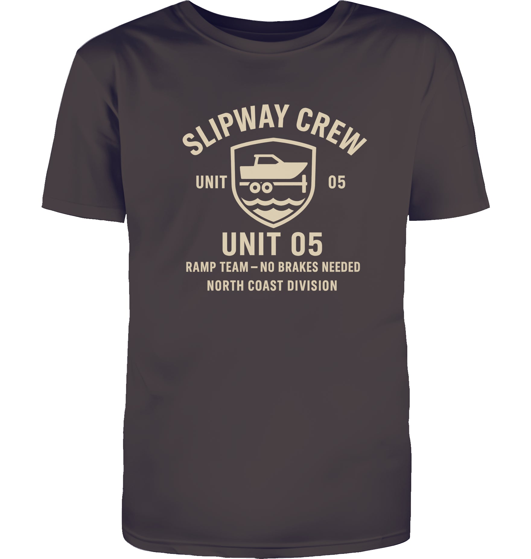 Die Slipway Crew Unit steht für Übersicht, Mut und das Gefühl, auch an vollen Rampen die Nerven zu behalten. Dieses Shirt verbindet den Charme früher Trailermannschaften mit dem modernen Bootsalltag – für alle, die wissen, wie man ein Boot gerade hält, auch wenn andere es nicht schaffen.
